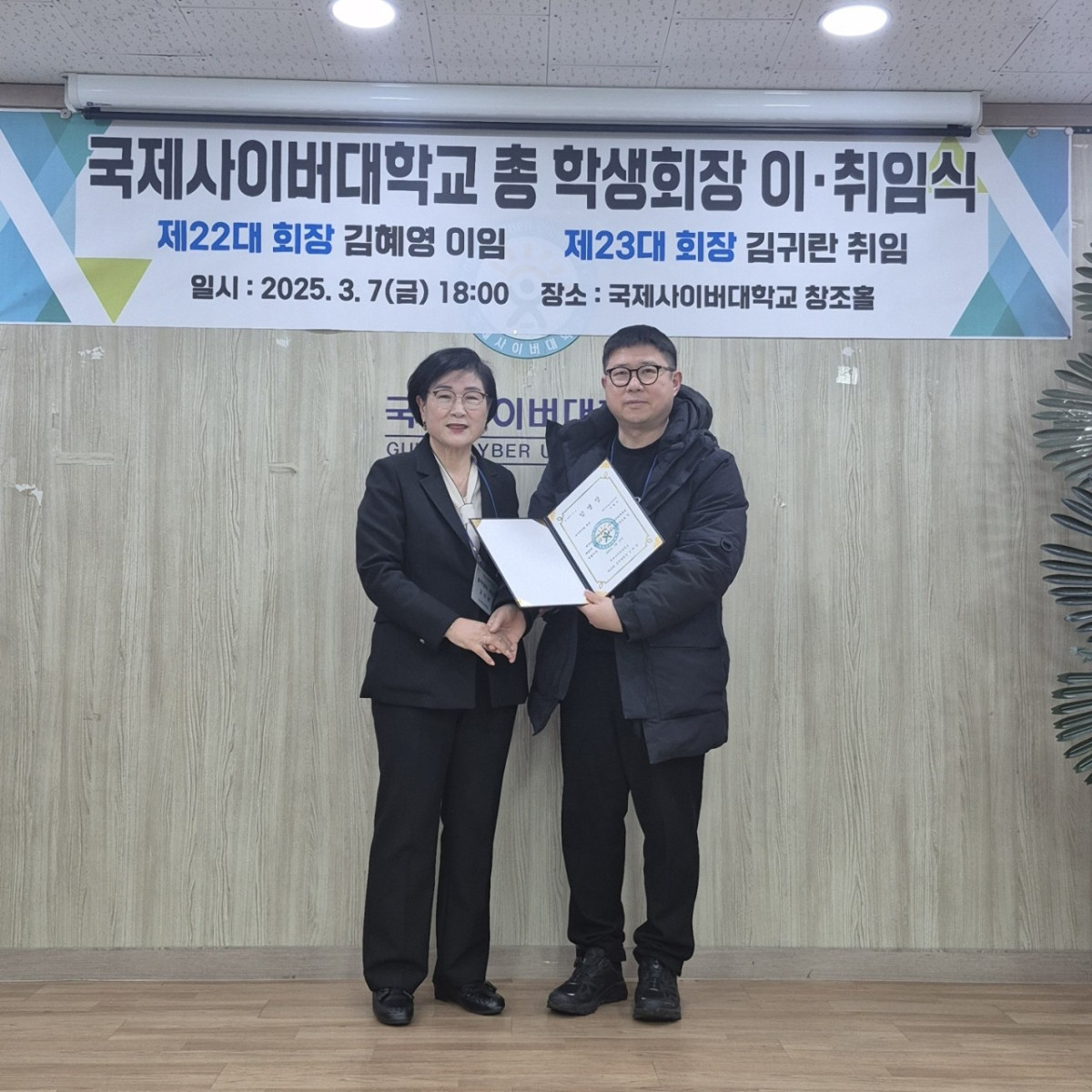 북부지역 학우회 북부지역 학우회 이현우회장님 임명장 수여식 페이지 정보 작성자 총학생회 댓글 댓글 0건 조회Hit 705회 작성일Date 25-04-17 23:59 본문 국제사이버대학교 북부지역 학우회 이현우회장님 임명장 수여일시 : 2025.03.07(금) 18:00장소 : 국제사이버대학교 창조홀북부지역 학우회 이현우 회장님 축하드립니다. 목록 이전글중부지역 학우회 박종철 회장님 임명장 수여식 25.04.18 다음글호남학우회 신. 편입생 환영회 모임. 25.04.17 댓글 0 댓글목록 등록된 댓글이 없습니다.